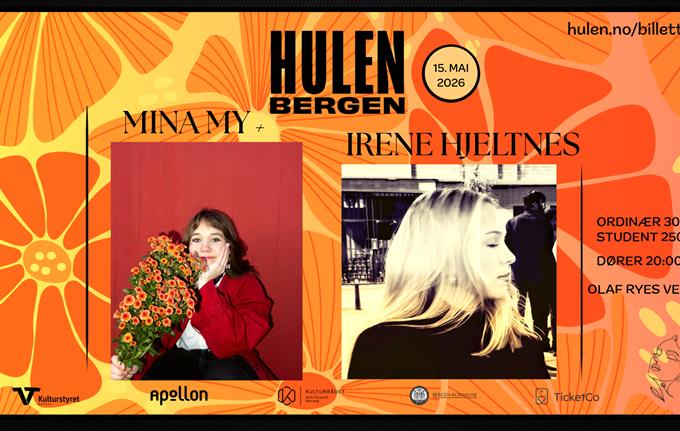 Mina My + Irene Hjeltnes || Hulen CC: 250/300 ID: 18 ---------- MINA MY Mina My fra Stavanger skriver ærlige låter om alt fra kjærlighet til eksistensiell angst. Musikalsk beveger hun seg i et utvidet indiepoprock-landskap, hvor hun blander…